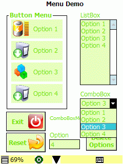 Displays a clickable button, combo or list menu.