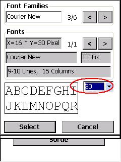Click on [Text Size +] or [Text Size -] some times until have the required size. Then check the selected size in the [Configuration] menu